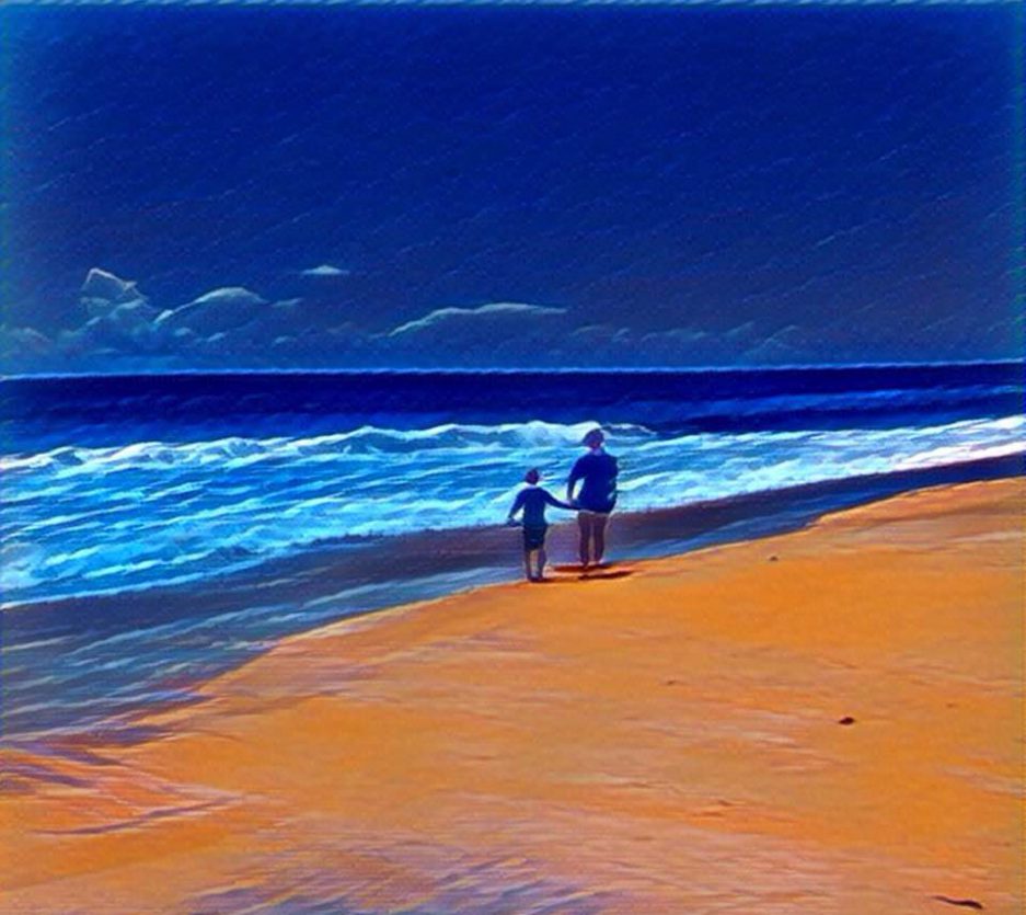 In the morning, however, as we opened the shades, the sun burst into our eyes, the roar of the surf filled our room, and complete serenity overcame us.  Reed looked out at the rolling white dunes, and in his precious wonderment exclaimed “Mama, how does it snow here?” As I drew him into a loving embrace, we laughed softly and harmoniously. Yes, Reese called him stupid, twice, but I acted deaf to his insults; after all, it was a new day. Everything seemed well with the world, until Ray went down to the water.